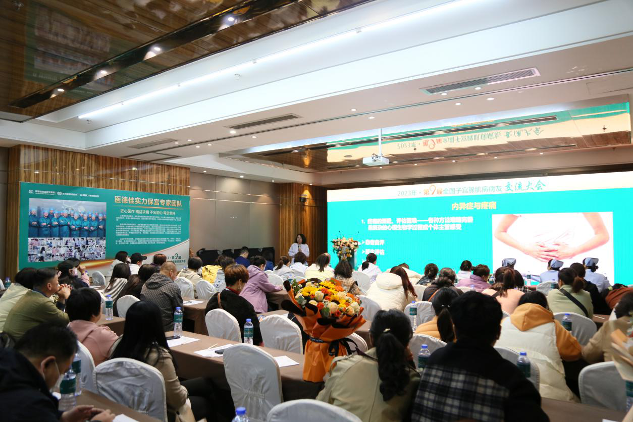 3月25日,2023年·第9届医德佳全国腺肌病病友交流大会在郑州举行,来自全国各地的近百名子宫腺肌病病友参会;全国子宫腺肌病保宫手术专家原首都医科大学附属复兴医院邓元琪教授、张洪涛教授莅临会场,就子宫腺肌病保宫手术的技术优势及特殊病案进行了学术交流;给参会的正在求医路上苦苦寻觅治疗方案的患者有了一次与腺肌病保宫专家面对面交流的机会;腺肌病康复病友也上台分享了自己的求医经历,呼吁广大的腺肌病病友姐妹要关爱自己,关注健康!